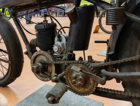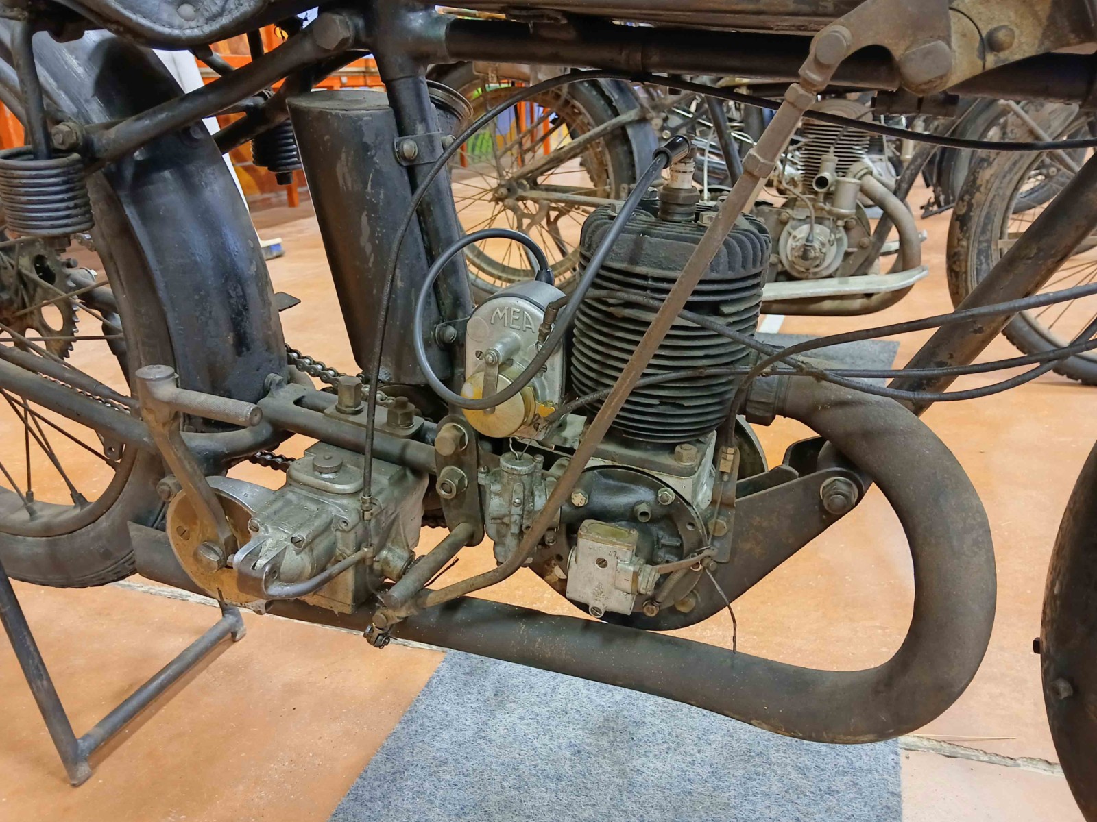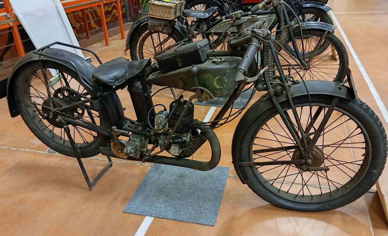 Une Winster, plus récente, à moteur JAP OHV, 350 cm3, réservoir en selle a survécu, ainsi qu'une autre avec une motorisation Chaise 350. Enfin, cette très belle 250 de 1928, qui a miraculeusement conservé sa peinture d'origine, avec la "nuance havane" spécifiée par la marque Valentinoise. Les machines des années 20 sont clairement constituées de pièces GAM, pour les "réservoirs en selle", c'est moins sur.