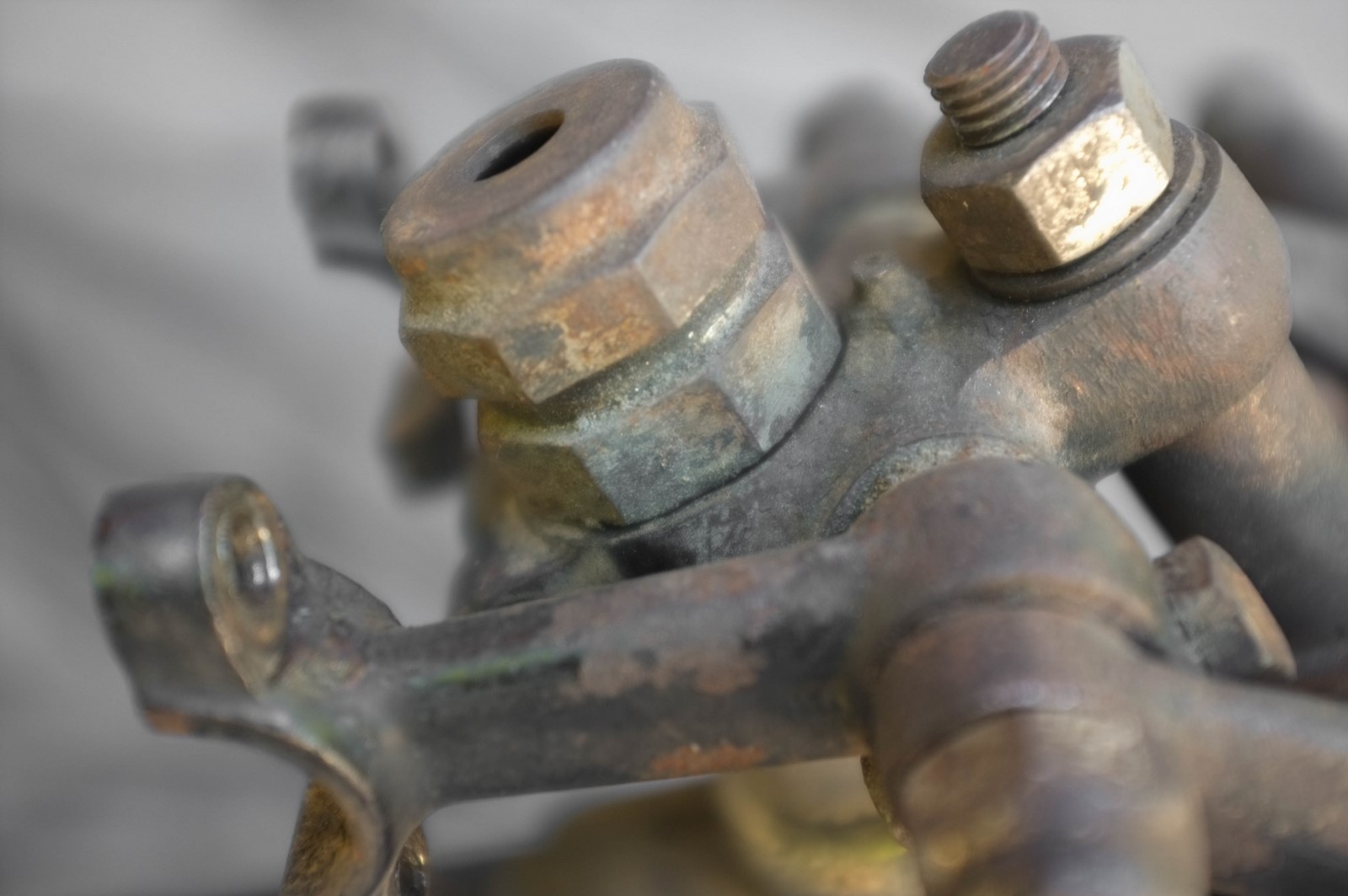 Toutes les cuvettes sont détruites. Cette 350 utilisent les mêmes montages que les 250 Styl'son RC à soupapes latérales. Le support en laiton, de la cuvette supérieure a souffert : il est fendu