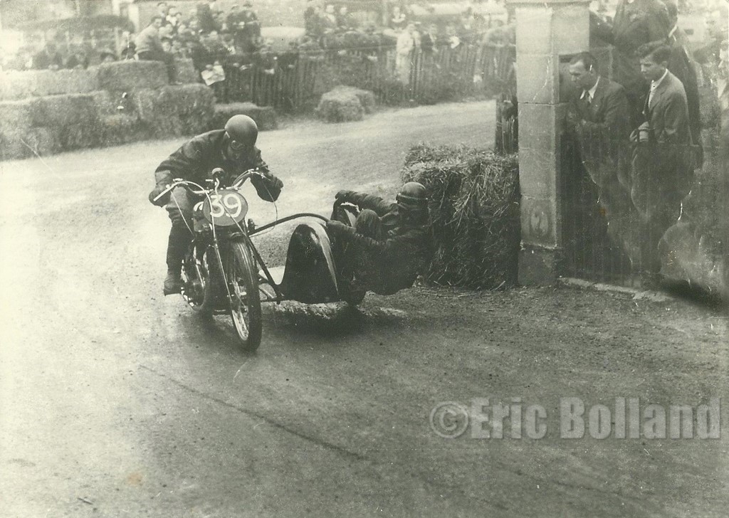 Raymond Bolland va mener à la victoire, en catégorie side car 350cc, cette moto au grand prix de Lyon le 6 juin 1937, et sur la photo ci dessus au "circuit du Forez" à Andrézieux le 19 mai 1946, avec son passager André Moran. La vue est saisissante de puissance et de vitesse, cette moto donne l'impression de sortir "très fort" de ce virage. Le side très épuré a une allure très moderne. La moto a survécu, et est présente en galerie photo (cliquer ici). Cette machine n'est pas vraiment une Styl'son, bien qu'elle en emprunte bon nombre d'élément, mais c'est une authentique fabrication de Raymond Bolland, sous la marque RM Lyon : Racing Moto Lyon, 98, rue Montesquieu, Lyon 7eme. Le side était inscrit en course sous la dénomination "RM Spécial".Styl'son aidera tout de même Raymond Bolland à équiper cette moto, et c'est à l'usine que le préparateur va récupérer deux moteurs. Ce sera l'occasion d'une rencontre directe, avec John Alfred Prestwich, "himself", qui amène deux J.A.P Racing 350. Initialement c'était des Blackburne qui avaient équipé cette moto. John Alfred était il présent, aussi, pour livrer le 500TT qui allait équiper la Tempest?