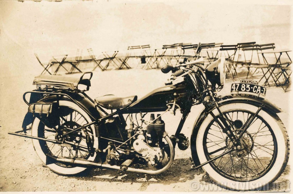 Cette photo est issue d'une carte postale ancienne, non datée, mais l'immatriculation d'avril à novembre 1929 dans les Bouches du Rhône, permet donc de déterminer la date de production de cette moto. Cette Styl'son RC prend donc la pose pour la postérité, avec ses pneus à flancs blancs et pour l'occasion elle a bénéficié d'un entretien soigné. Cette carte postale met en valeur un équipement complet, digne d'une grande!