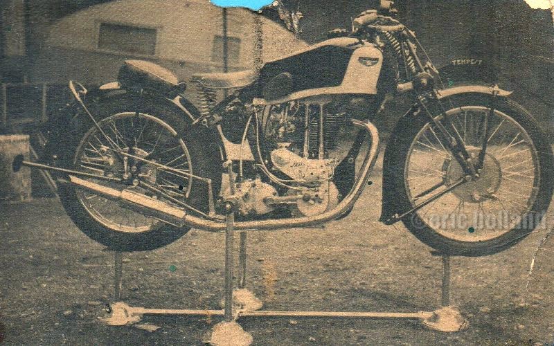 Probablement le rêve de tous les sportsmen de l'époque. Et pour cause, le J.A.P TT, apparu en 1935 est le moteur de la firme de Totenham destiné à équiper les machines d'usine (en l'occurrence HRD) pour la compétition la plus prestigieuse de cette époque. C'est aussi le dernier, J.A.P abandonnera le domaine des courses de vitesse. Le TT n'aura que peu de développement et disparaît. J.A.P ne proposera plus que des "Racing" et "Speedway". La Tempest a une version 1936 : double allumage, deux admissions (deux carburateurs), culbuteurs rappelés par des ressorts en épingle, et une trappe d'accès au pignon de magnéto. La lubrification est du type carter sec, mais FIMA a rajouté une pompe à huile perdue. Le reste de la machine est à l'avenant : Boîte Burman 4 sélecteur, double tambour à l'avant, réservoir en crosse très "racé". Une moto réunissant les meilleurs éléments de son époque. A la différence des photos dans Moto Revue, elle est ici présentée sans phare, comme une vraie moto de course. Le rêve d'aujourd'hui aussi, la Styl'son Tempest, un modèle unique, a disparu, sans avoir obtenu de palmarès ...