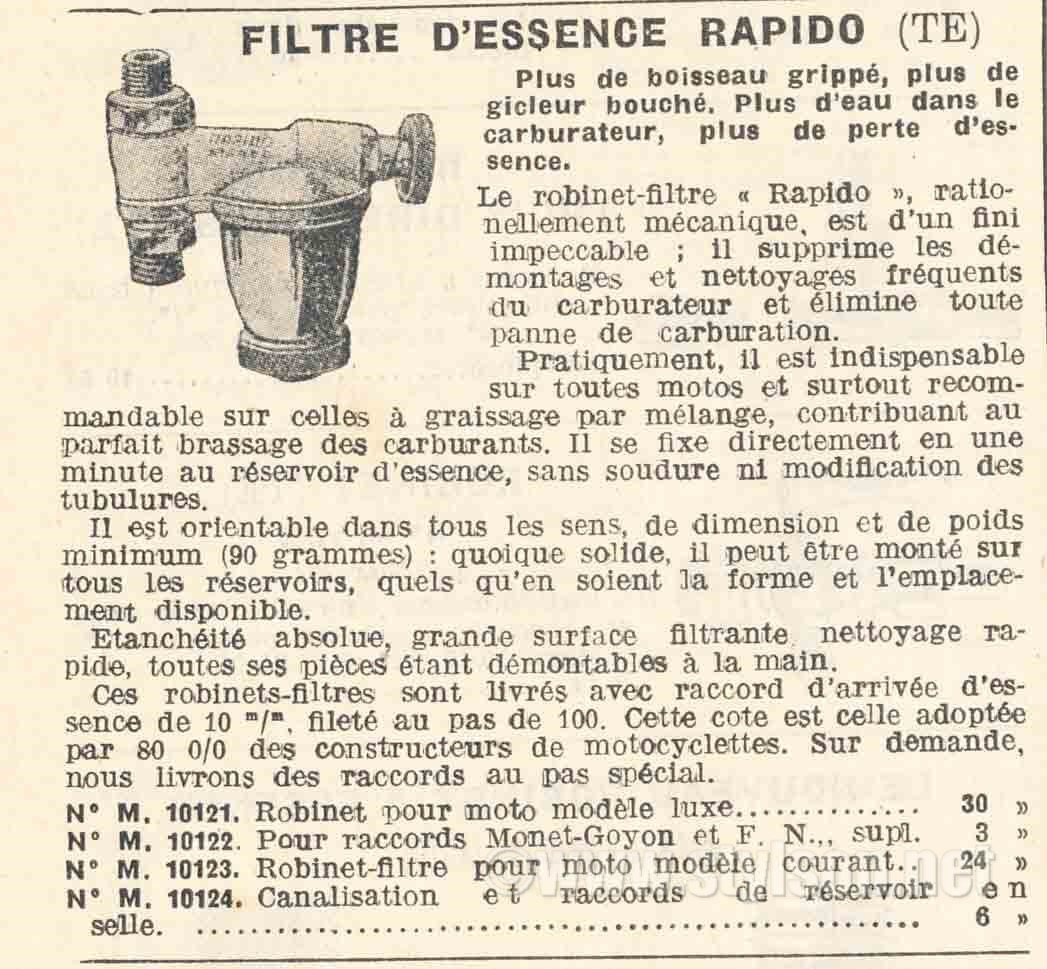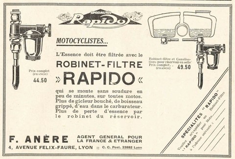 - Catalogue "Tout pour moto. Auto vélo sport", 55, place République, et 9, quai Jules Courmont à Lyon. 1930