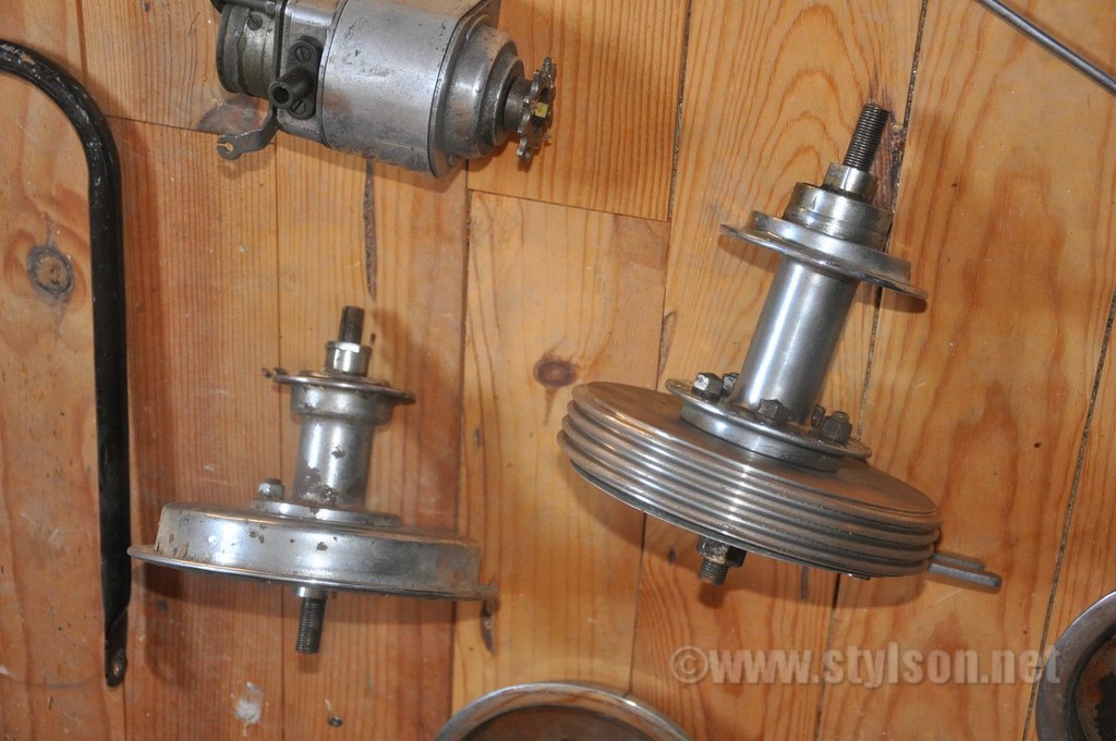 Les deux tambours et moyeux sont chromés. Toute la visserie de cette moto était chromée.