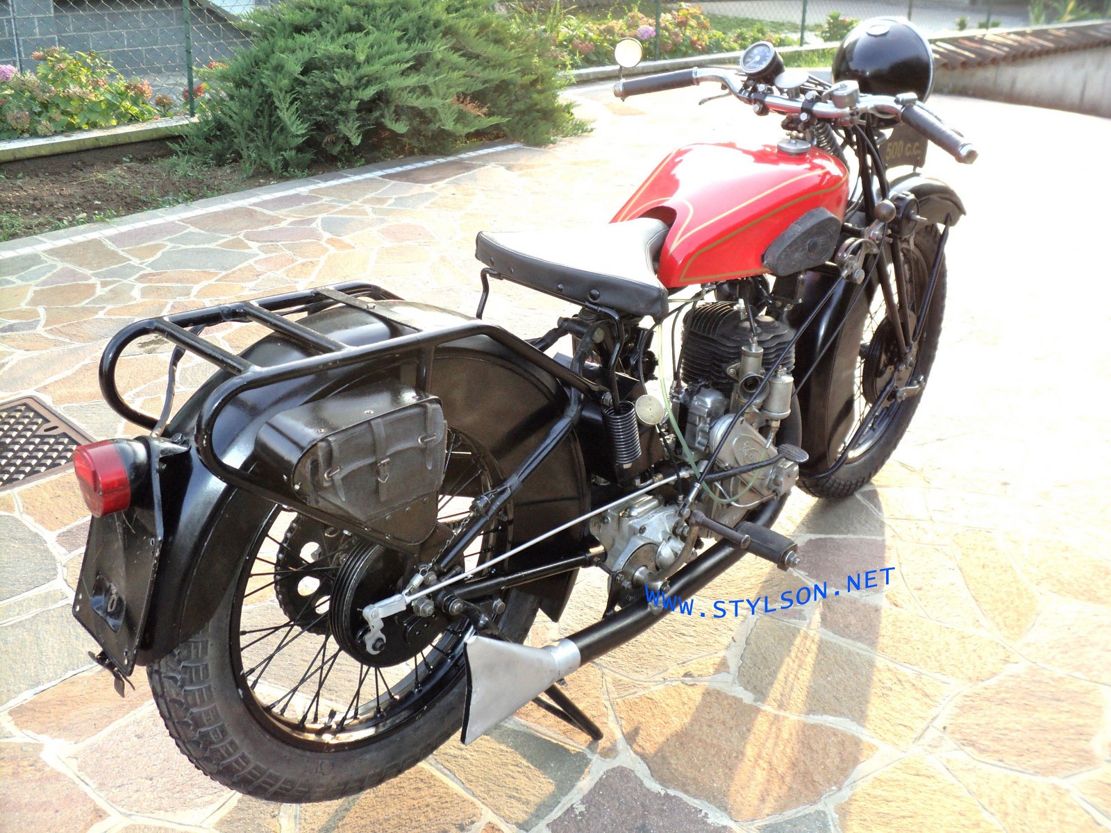 Cette photo met bien en valeur, l'angle spécifique de l'admission de ce moteur Blackburne. L'ensemble plaque d'immatriculation et feu arrière correspond à un besoin de mise en conformité avec la législation. Boîte à vitesse Burman type T