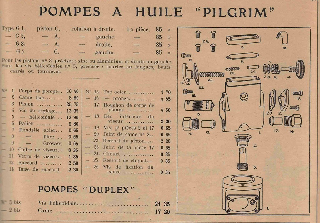 Les pompes à huile Pilgrim sont fréquentes sur nos Styl'son à moteur Britannique. Cette planche ne manque pas d'intérêt et permet à tout collectionneur de savoir à quoi s'attendre avant démontage. En effet, à la différence des Best & Lloyd de la même génération, ici, tout se démonte.