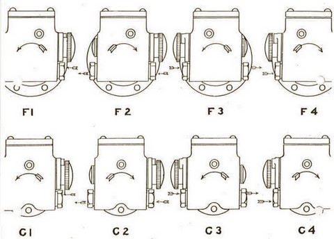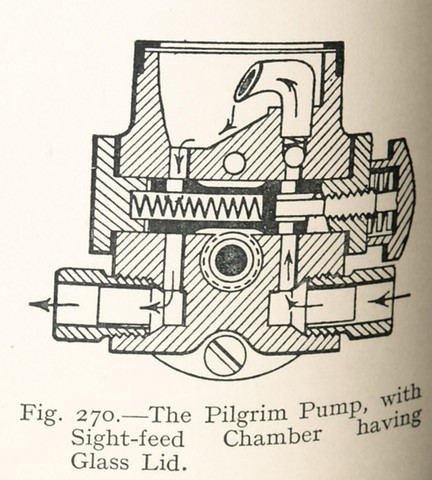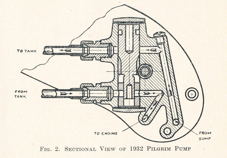 4 types de pompes Pilgrim : F, G; Special J.A.P et H (pompe duplex). Les F, G et J.A.P special partagent la même technologie. D'autre types existent, pour carter sec (J.AP) et aussi pour carburants (gaz oil).
