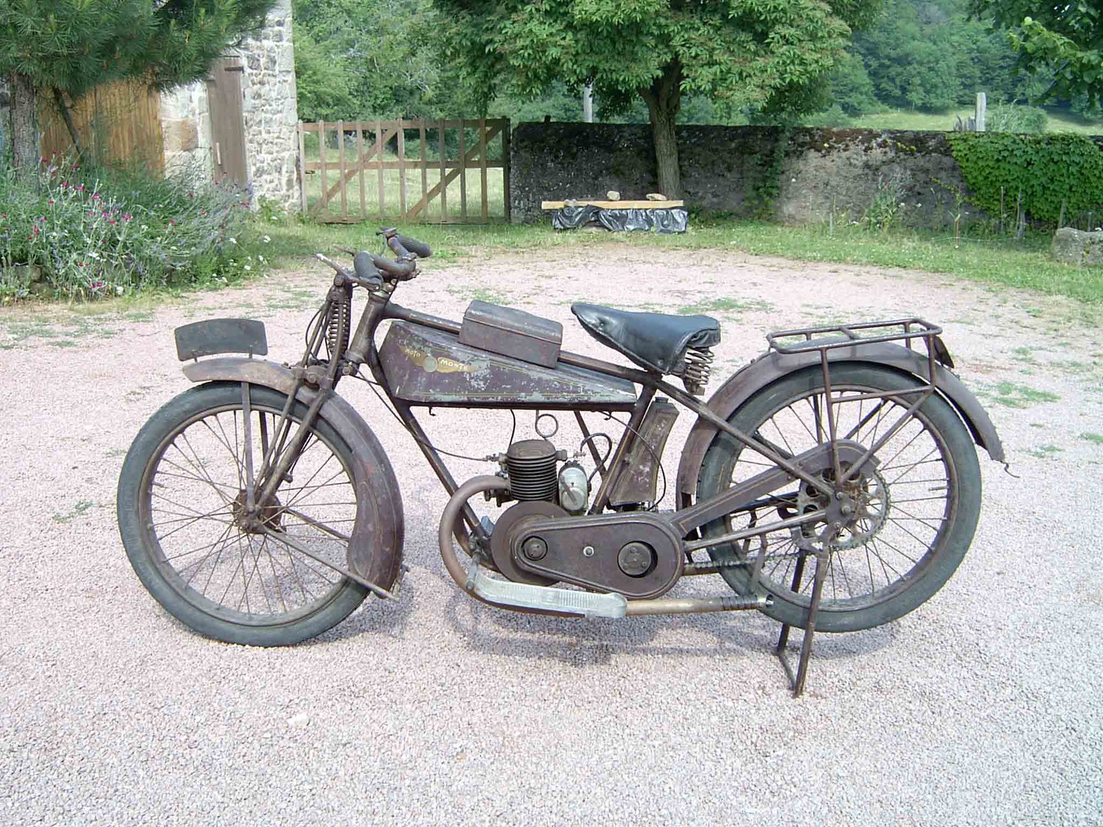 Un extrait d'une réclame dans Moto Revue d' avril 1927. Exactement la même machine, notre survivante possède l'option boite à outil sur le réservoir, ainsi qu'un réservoir d'huile.