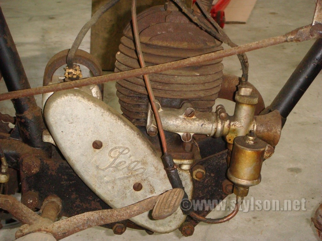 C'est marqué dessus c'est un Péa, un rarissime survivant de la Production des établissement AYA. Cette mécanique présente un bonne finition avec une belle fonderie des carters et un ailettage généreux. Péa a fabriqué aussi le P2 deux temps, et le P3, un 350 4 temps à soupapes latérales.