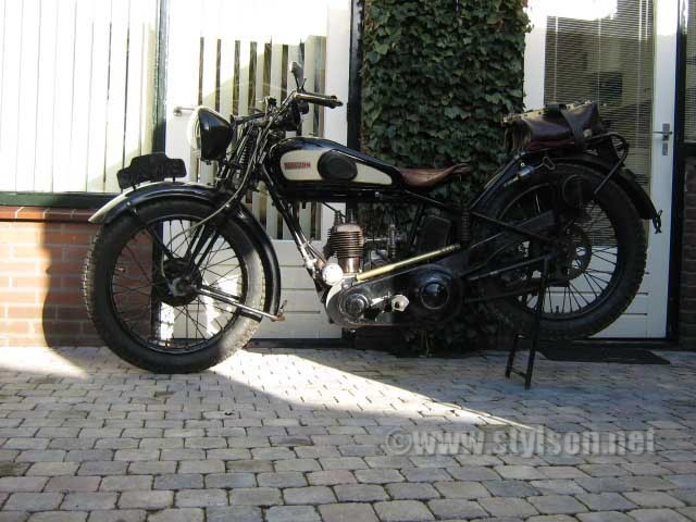 Voici la 250 BG de Dik, une moto qui se trouve au Pays-Bas. Cette 250 est un bon exemple de restauration. En effet, Dik n'a pas rénové les éléments qui étaient dans un état "convenable". Ainsi les nickels, et une bonne partie de la peinture sont restés en état d'origine. Le réservoir semble avoir fait l'objet d'une rénovation ancienne, mais ce type de décalcomanies a bien été utilisé sur des motos plus anciennes. Bien sur, nous n'avons pas tous la chance de trouver une machine dans un tel état de fraîcheur ! Cette 250 à moteur JAP type B soupapes latérales est complète, est visiblement gréée pour prendre la route et circule donc du coté de Utrecht.