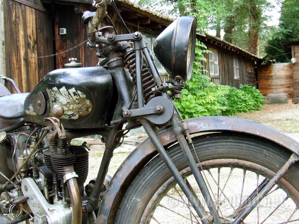 Détail de la fourche AYA . Plus rigide et mieux dirigée, mais présentation austère. Equipement électrique : phare Cibié et dynamo NOVI.