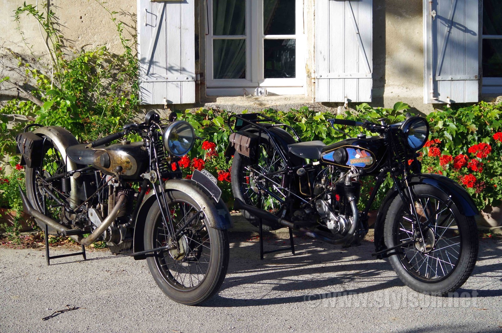 Pas commun, deux Styl'son côte à côte. La RI2 parait bien austère (certes sans le tube d'échappement chromé, ni la plaque d'immatriculation en aluminium), et la RD "grand luxe" particulièrement exubérante avec ses nombreux éléments chromés, son JAP 250 culbuté avec le double échappement. Le guidon réversible est en position sport sur la RD, et en position tourisme sur la RI2. La moto est plus maniable et plus légère à manœuvrer en position tourisme.